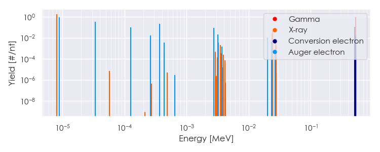Spectra source: ICRP Publication 107: Nuclear Decay Data for Dosimetric Calculations. Ann. ICRP 2008, 38 (3).