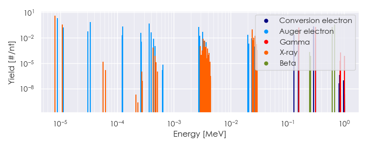 Spectra source: ICRP Publication 107: Nuclear Decay Data for Dosimetric Calculations. Ann. ICRP 2008, 38 (3).