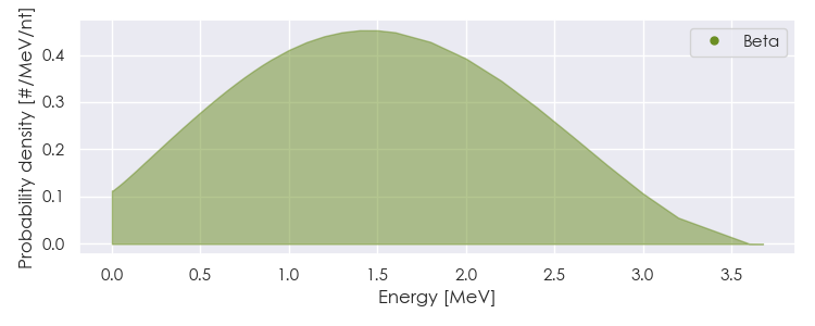 Spectra source: ICRP Publication 107: Nuclear Decay Data for Dosimetric Calculations. Ann. ICRP 2008, 38 (3).