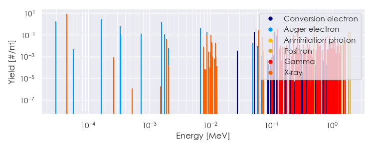 Spectra source: ICRP Publication 107: Nuclear Decay Data for Dosimetric Calculations. Ann. ICRP 2008, 38 (3).
