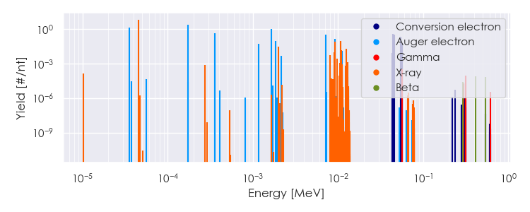 Spectra source: ICRP Publication 107: Nuclear Decay Data for Dosimetric Calculations. Ann. ICRP 2008, 38 (3).