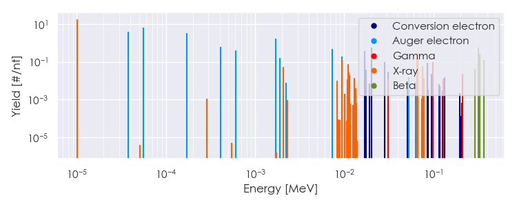 Spectra source: ICRP Publication 107: Nuclear Decay Data for Dosimetric Calculations. Ann. ICRP 2008, 38 (3).