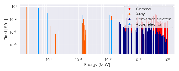 Spectra source: ICRP Publication 107: Nuclear Decay Data for Dosimetric Calculations. Ann. ICRP 2008, 38 (3).