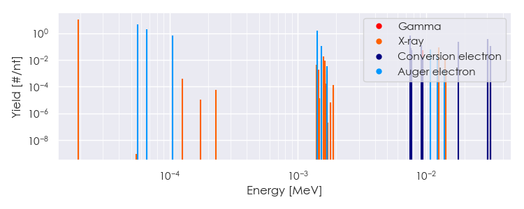 Spectra source: ICRP Publication 107: Nuclear Decay Data for Dosimetric Calculations. Ann. ICRP 2008, 38 (3).