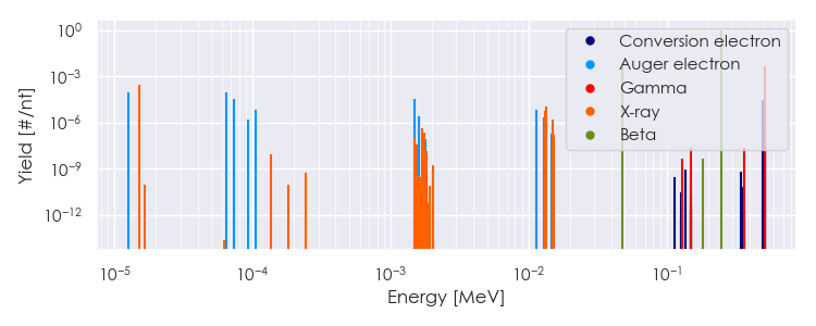 Spectra source: ICRP Publication 107: Nuclear Decay Data for Dosimetric Calculations. Ann. ICRP 2008, 38 (3).
