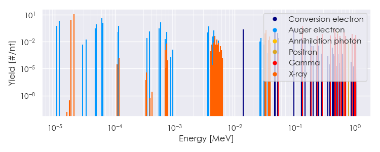 Spectra source: ICRP Publication 107: Nuclear Decay Data for Dosimetric Calculations. Ann. ICRP 2008, 38 (3).