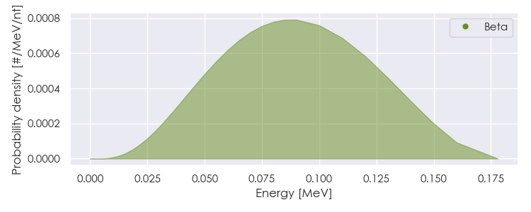 Spectra source: ICRP Publication 107: Nuclear Decay Data for Dosimetric Calculations. Ann. ICRP 2008, 38 (3).
