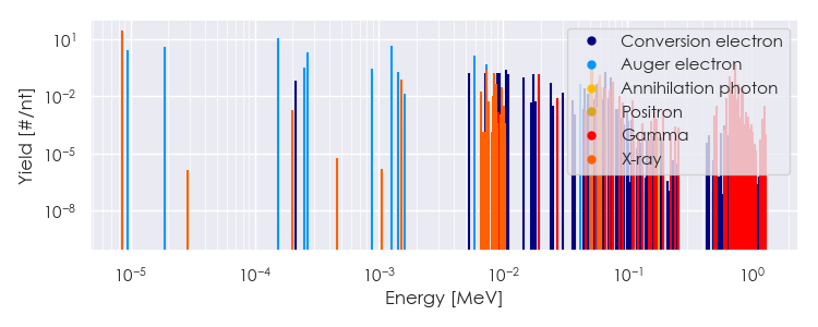 Spectra source: ICRP Publication 107: Nuclear Decay Data for Dosimetric Calculations. Ann. ICRP 2008, 38 (3).