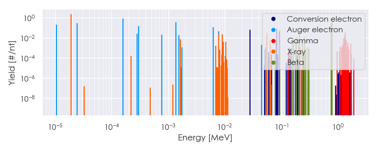 Spectra source: ICRP Publication 107: Nuclear Decay Data for Dosimetric Calculations. Ann. ICRP 2008, 38 (3).