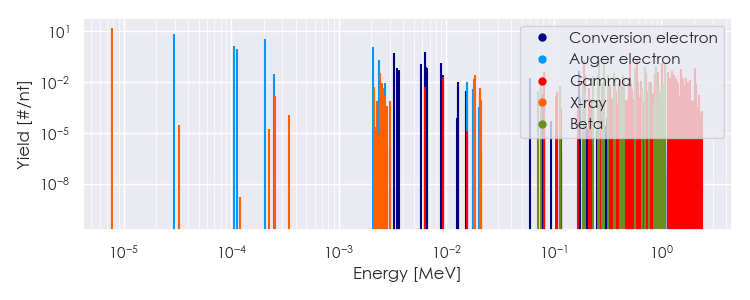 Spectra source: ICRP Publication 107: Nuclear Decay Data for Dosimetric Calculations. Ann. ICRP 2008, 38 (3).