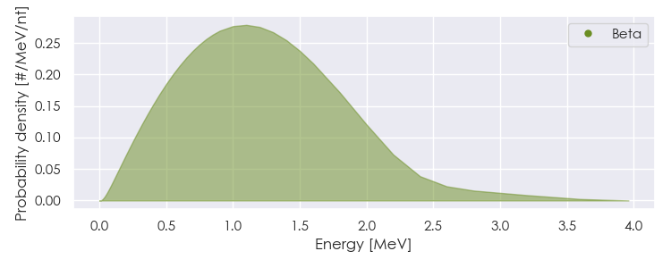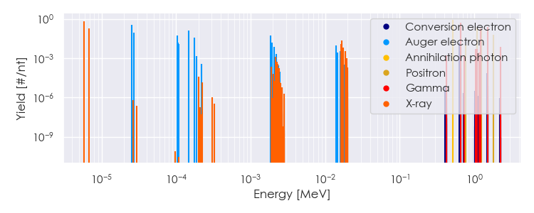 Spectra source: ICRP Publication 107: Nuclear Decay Data for Dosimetric Calculations. Ann. ICRP 2008, 38 (3).