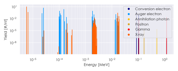 Spectra source: ICRP Publication 107: Nuclear Decay Data for Dosimetric Calculations. Ann. ICRP 2008, 38 (3).