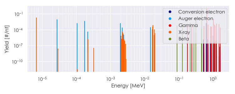 Spectra source: ICRP Publication 107: Nuclear Decay Data for Dosimetric Calculations. Ann. ICRP 2008, 38 (3).