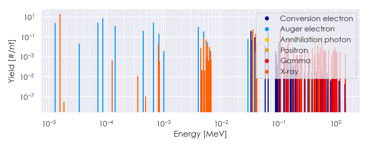 Spectra source: ICRP Publication 107: Nuclear Decay Data for Dosimetric Calculations. Ann. ICRP 2008, 38 (3).