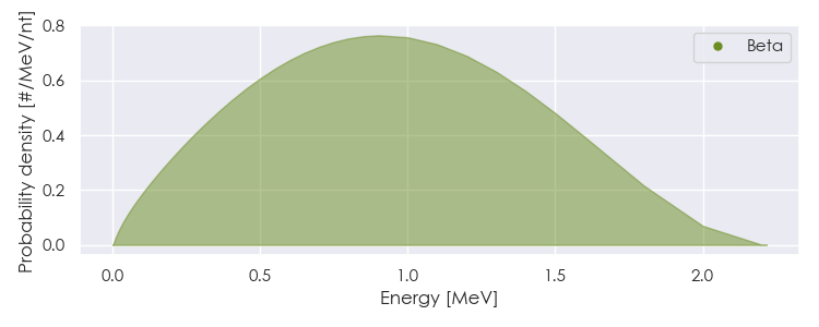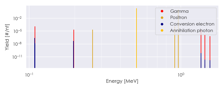 Spectra source: ICRP Publication 107: Nuclear Decay Data for Dosimetric Calculations. Ann. ICRP 2008, 38 (3).