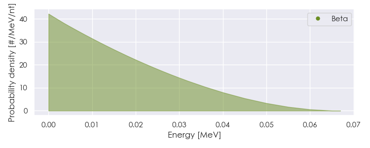 Spectra source: ICRP Publication 107: Nuclear Decay Data for Dosimetric Calculations. Ann. ICRP 2008, 38 (3).