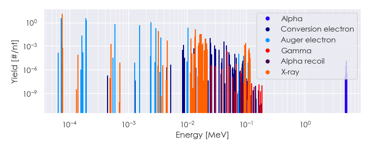 Spectra source: ICRP Publication 107: Nuclear Decay Data for Dosimetric Calculations. Ann. ICRP 2008, 38 (3).
