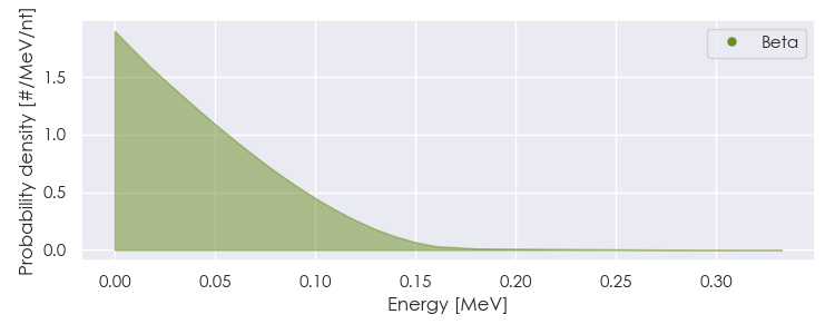 Spectra source: ICRP Publication 107: Nuclear Decay Data for Dosimetric Calculations. Ann. ICRP 2008, 38 (3).