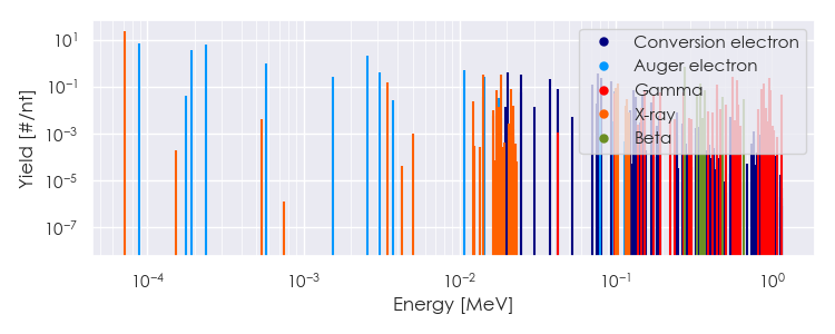 Spectra source: ICRP Publication 107: Nuclear Decay Data for Dosimetric Calculations. Ann. ICRP 2008, 38 (3).