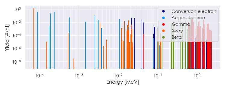 Spectra source: ICRP Publication 107: Nuclear Decay Data for Dosimetric Calculations. Ann. ICRP 2008, 38 (3).