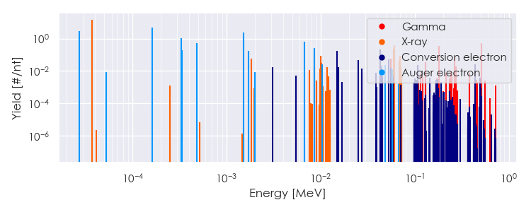 Spectra source: ICRP Publication 107: Nuclear Decay Data for Dosimetric Calculations. Ann. ICRP 2008, 38 (3).