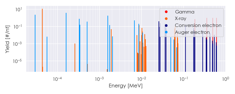 Spectra source: ICRP Publication 107: Nuclear Decay Data for Dosimetric Calculations. Ann. ICRP 2008, 38 (3).
