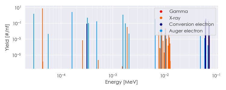 Spectra source: ICRP Publication 107: Nuclear Decay Data for Dosimetric Calculations. Ann. ICRP 2008, 38 (3).