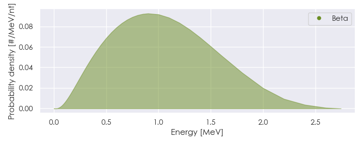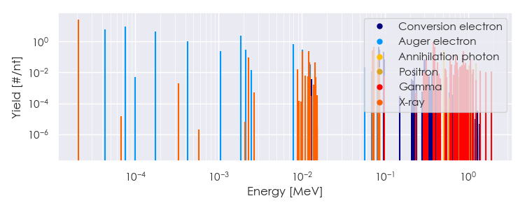 Spectra source: ICRP Publication 107: Nuclear Decay Data for Dosimetric Calculations. Ann. ICRP 2008, 38 (3).