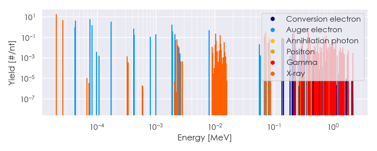 Spectra source: ICRP Publication 107: Nuclear Decay Data for Dosimetric Calculations. Ann. ICRP 2008, 38 (3).