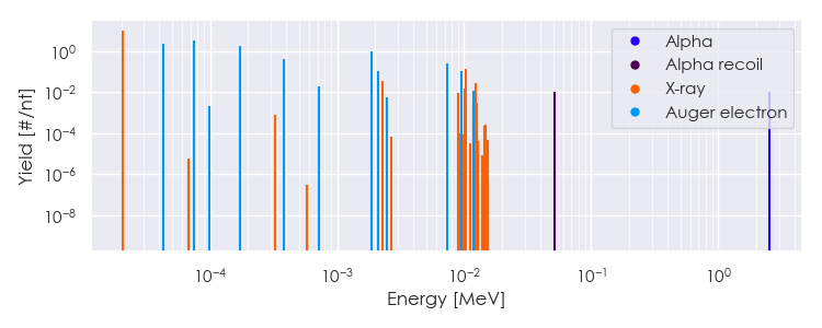 Spectra source: ICRP Publication 107: Nuclear Decay Data for Dosimetric Calculations. Ann. ICRP 2008, 38 (3).