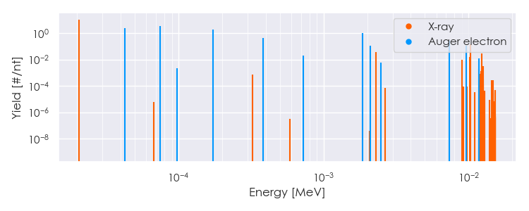 Spectra source: ICRP Publication 107: Nuclear Decay Data for Dosimetric Calculations. Ann. ICRP 2008, 38 (3).