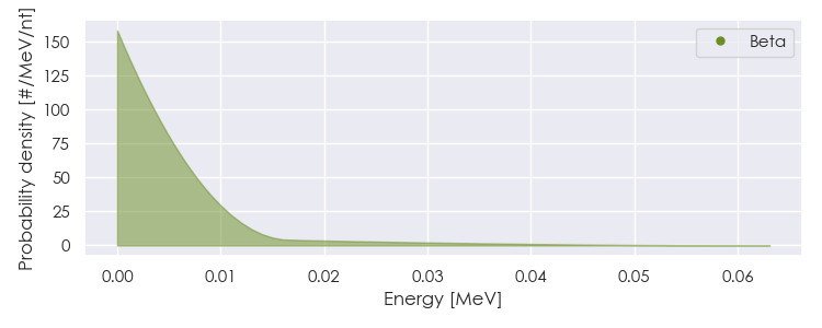Spectra source: ICRP Publication 107: Nuclear Decay Data for Dosimetric Calculations. Ann. ICRP 2008, 38 (3).
