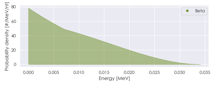 Spectra source: ICRP Publication 107: Nuclear Decay Data for Dosimetric Calculations. Ann. ICRP 2008, 38 (3).