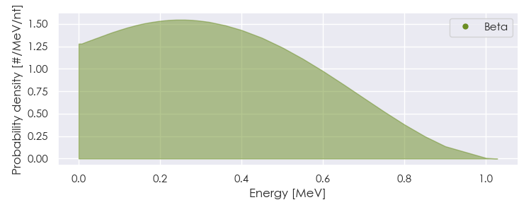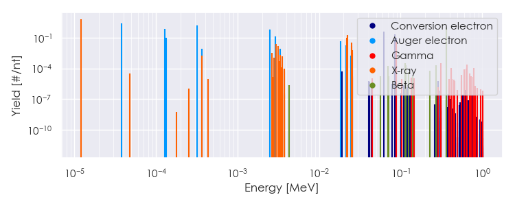 Spectra source: ICRP Publication 107: Nuclear Decay Data for Dosimetric Calculations. Ann. ICRP 2008, 38 (3).