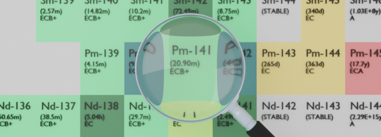 Daughters: Nd-141 (99.8%), Nd-141m (0.167%)
