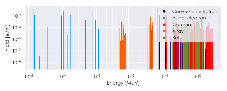 Spectra source: ICRP Publication 107: Nuclear Decay Data for Dosimetric Calculations. Ann. ICRP 2008, 38 (3).