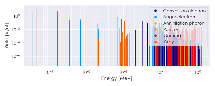 Spectra source: ICRP Publication 107: Nuclear Decay Data for Dosimetric Calculations. Ann. ICRP 2008, 38 (3).