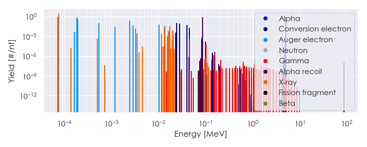 Spectra source: ICRP Publication 107: Nuclear Decay Data for Dosimetric Calculations. Ann. ICRP 2008, 38 (3).