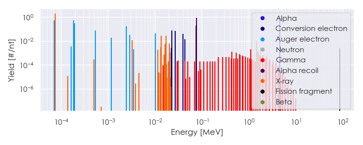 Spectra source: ICRP Publication 107: Nuclear Decay Data for Dosimetric Calculations. Ann. ICRP 2008, 38 (3).