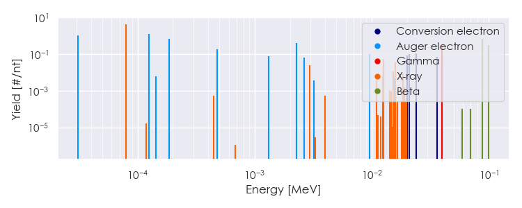 Spectra source: ICRP Publication 107: Nuclear Decay Data for Dosimetric Calculations. Ann. ICRP 2008, 38 (3).