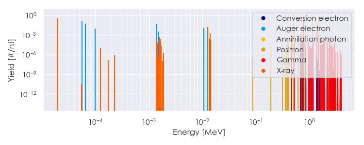 Spectra source: ICRP Publication 107: Nuclear Decay Data for Dosimetric Calculations. Ann. ICRP 2008, 38 (3).