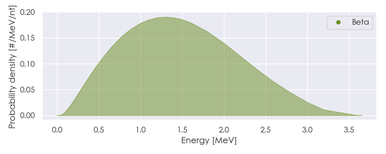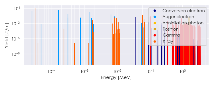 Spectra source: ICRP Publication 107: Nuclear Decay Data for Dosimetric Calculations. Ann. ICRP 2008, 38 (3).