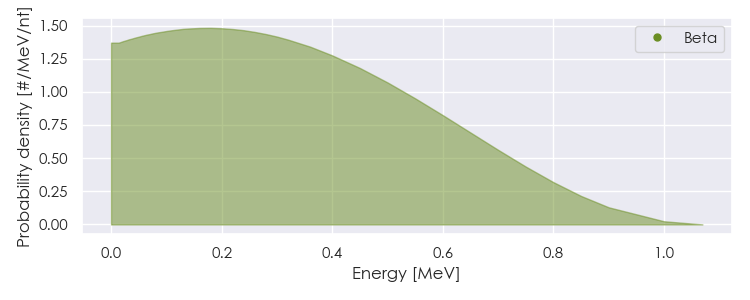 Spectra source: ICRP Publication 107: Nuclear Decay Data for Dosimetric Calculations. Ann. ICRP 2008, 38 (3).