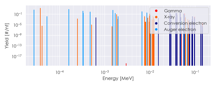 Spectra source: ICRP Publication 107: Nuclear Decay Data for Dosimetric Calculations. Ann. ICRP 2008, 38 (3).