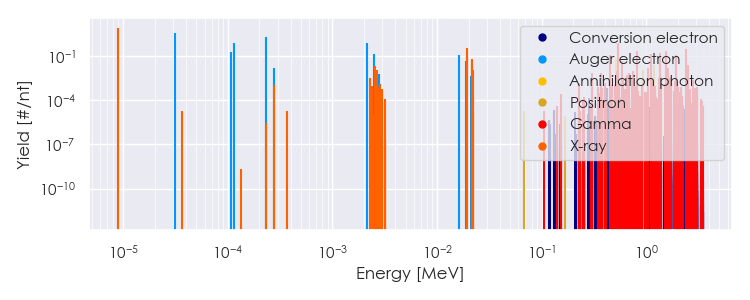 Spectra source: ICRP Publication 107: Nuclear Decay Data for Dosimetric Calculations. Ann. ICRP 2008, 38 (3).