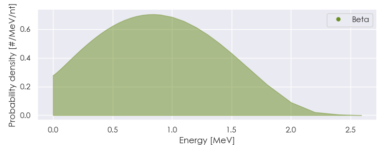 Spectra source: ICRP Publication 107: Nuclear Decay Data for Dosimetric Calculations. Ann. ICRP 2008, 38 (3).