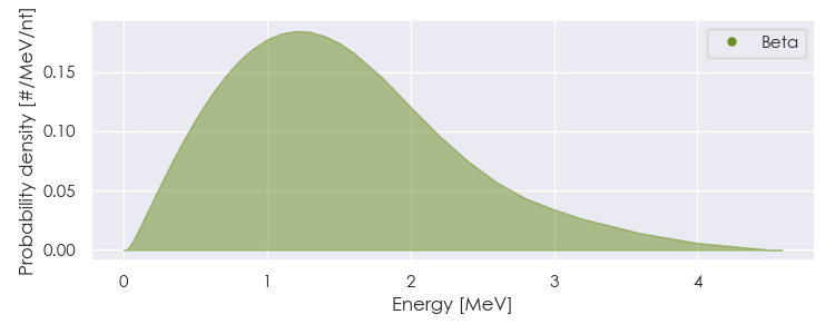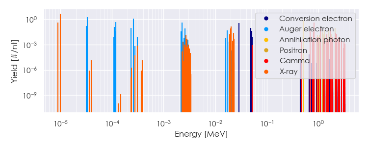 Spectra source: ICRP Publication 107: Nuclear Decay Data for Dosimetric Calculations. Ann. ICRP 2008, 38 (3).