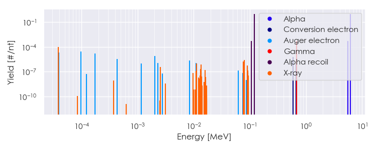 Spectra source: ICRP Publication 107: Nuclear Decay Data for Dosimetric Calculations. Ann. ICRP 2008, 38 (3).