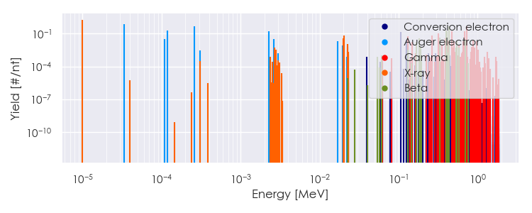 Spectra source: ICRP Publication 107: Nuclear Decay Data for Dosimetric Calculations. Ann. ICRP 2008, 38 (3).
