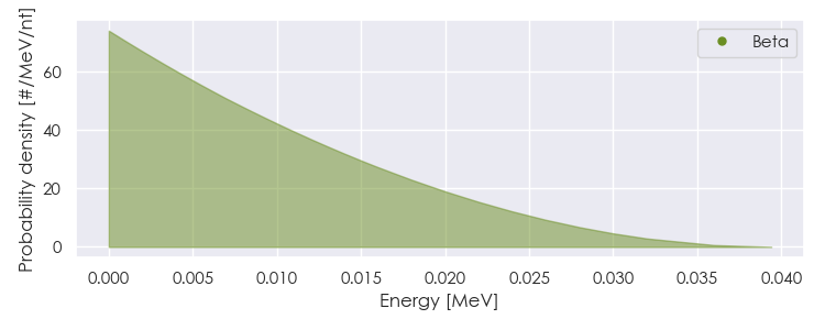 Spectra source: ICRP Publication 107: Nuclear Decay Data for Dosimetric Calculations. Ann. ICRP 2008, 38 (3).